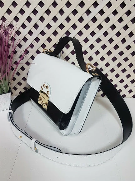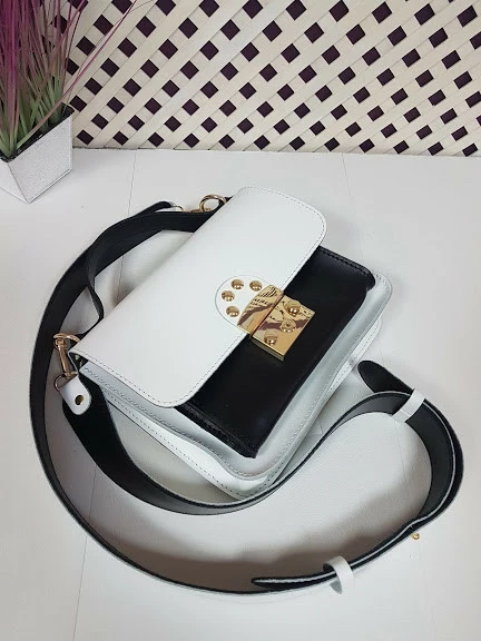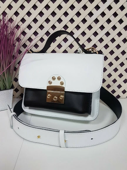 Сумка женская "Бианка" натуральная кожа, белая с черной комбинированная