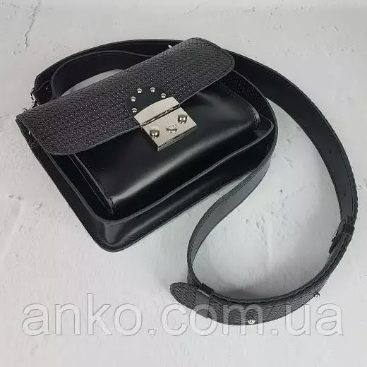 Сумочка закрывается на замок-защелку, имеет два отделения и