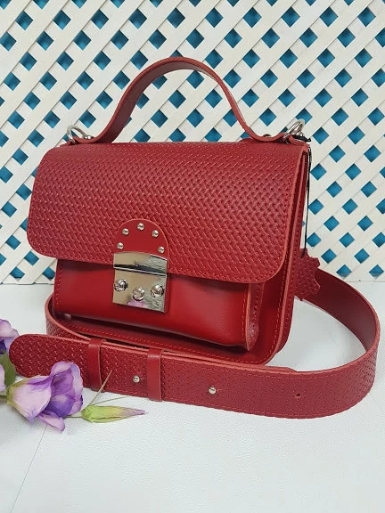 Сумка женская "Бианка" натуральная кожа, красная матовая с плетенкой