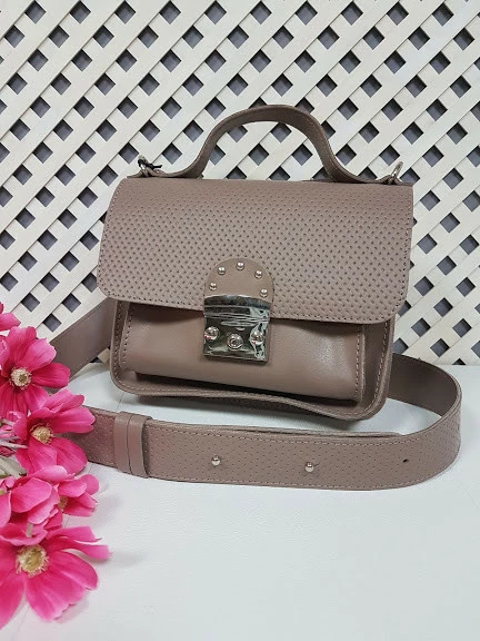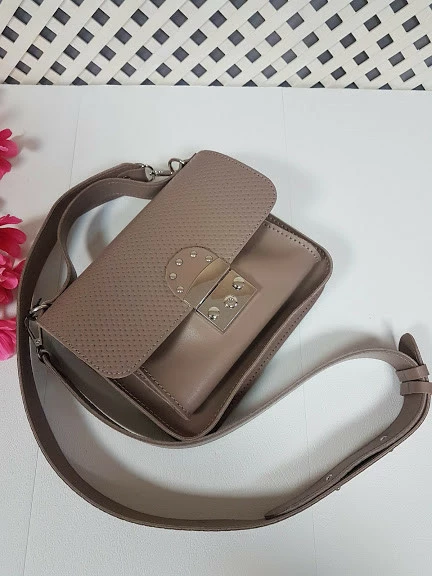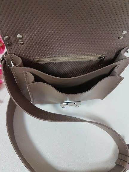 Сумочка закрывается на замок-защелку, имеет два отделения и