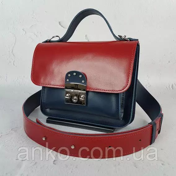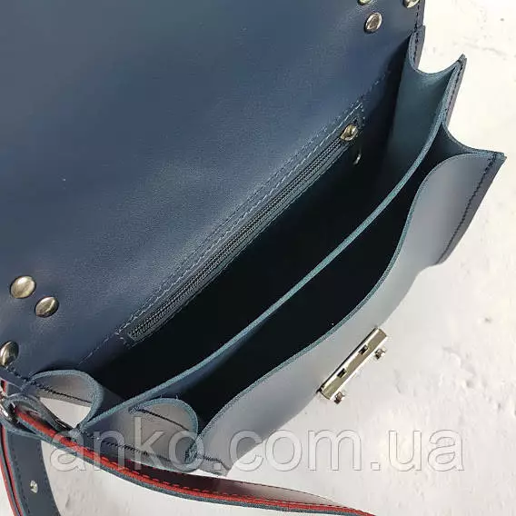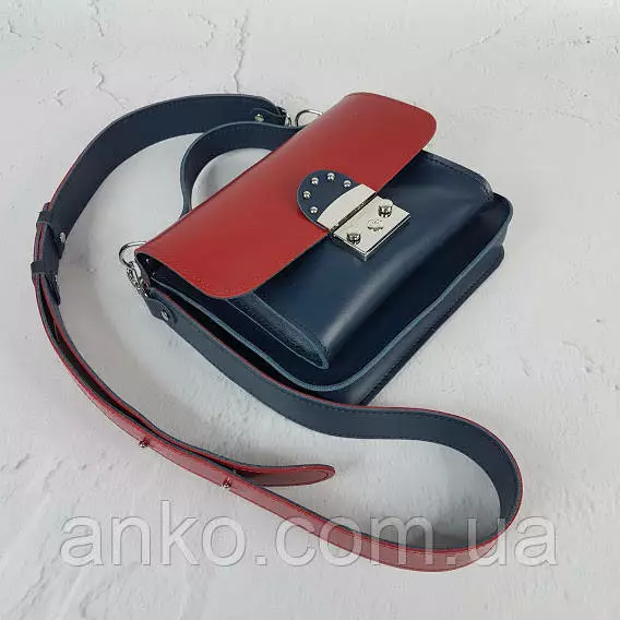 Сумка женская "Бианка" натуральная кожа, синяя / красная