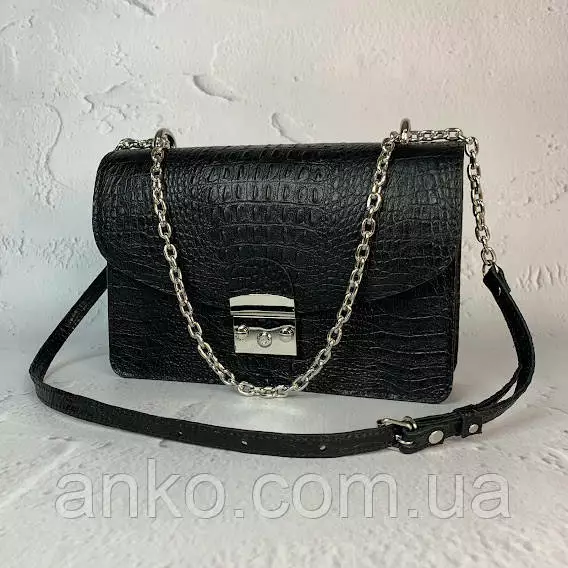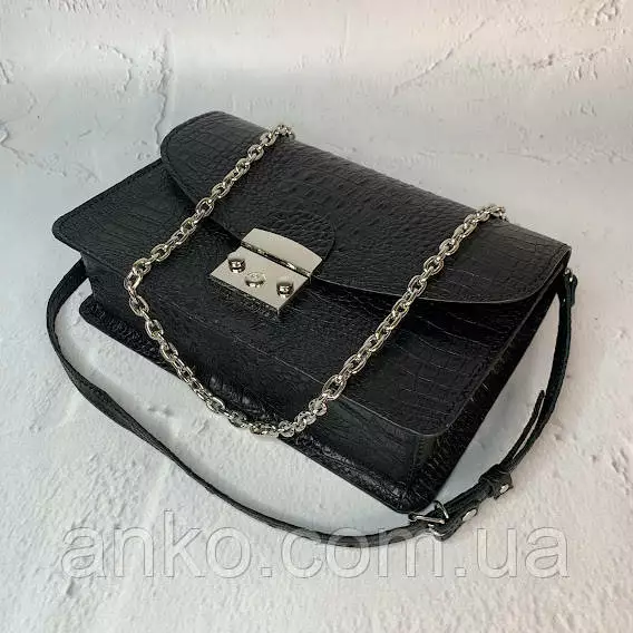 Сумка закрывается на замок-защелку, имеет одно основное отделение,