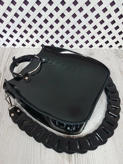 сумочки в необычной форме и ещё более необычном длинном ремне,