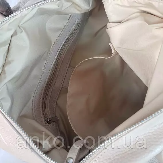 кожи, внутри на подкладке. Имеются карман на молнии и открытый