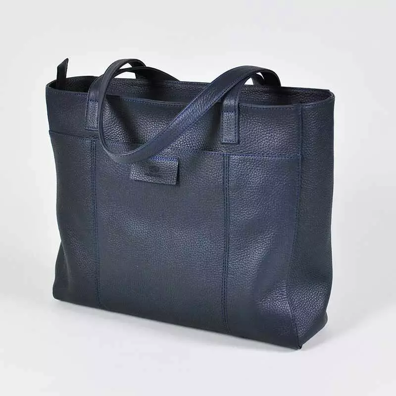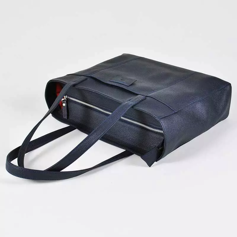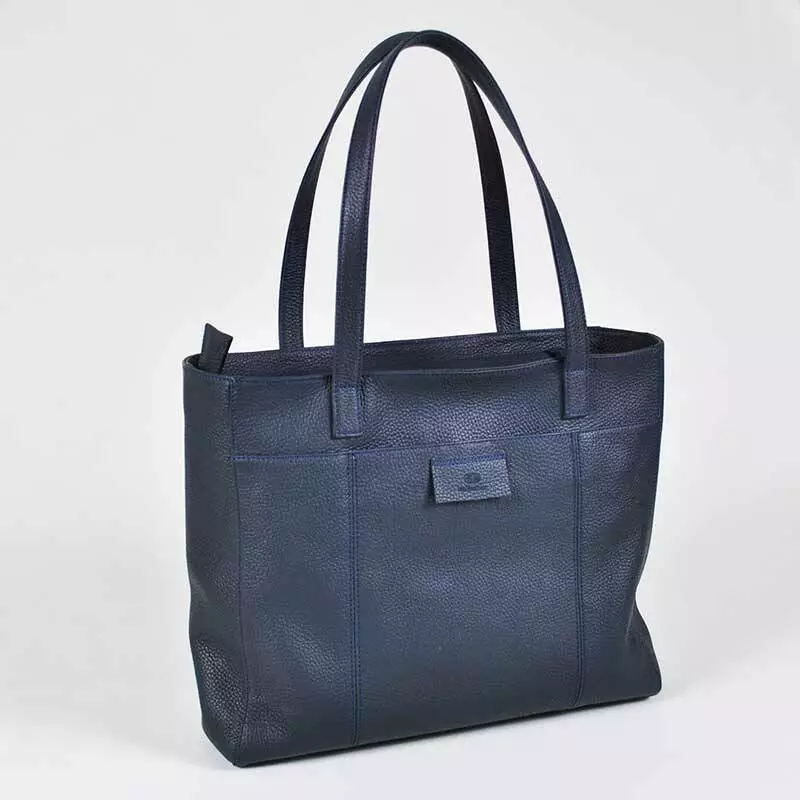 Жіноча сумка шоперу пошита з натуральної шкіри флотар темно-синього кольору.