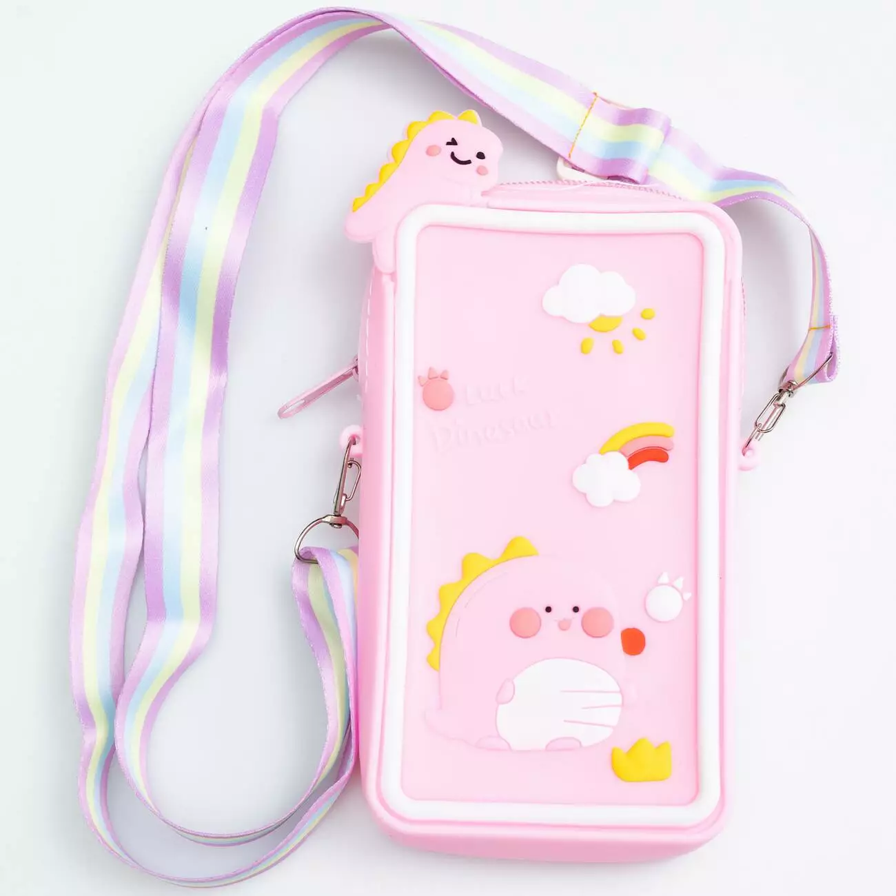 Сумочка-футляр для телефону Luck Dinosaur силіконова на блискавці 17*10*3 см, рожевий