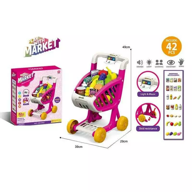 Візок з продуктами 922-155 (16) 42 елементи, пісні англ. мовою, підсвічування, візок для покупок, муляжі продуктів, наліпки, в коробці