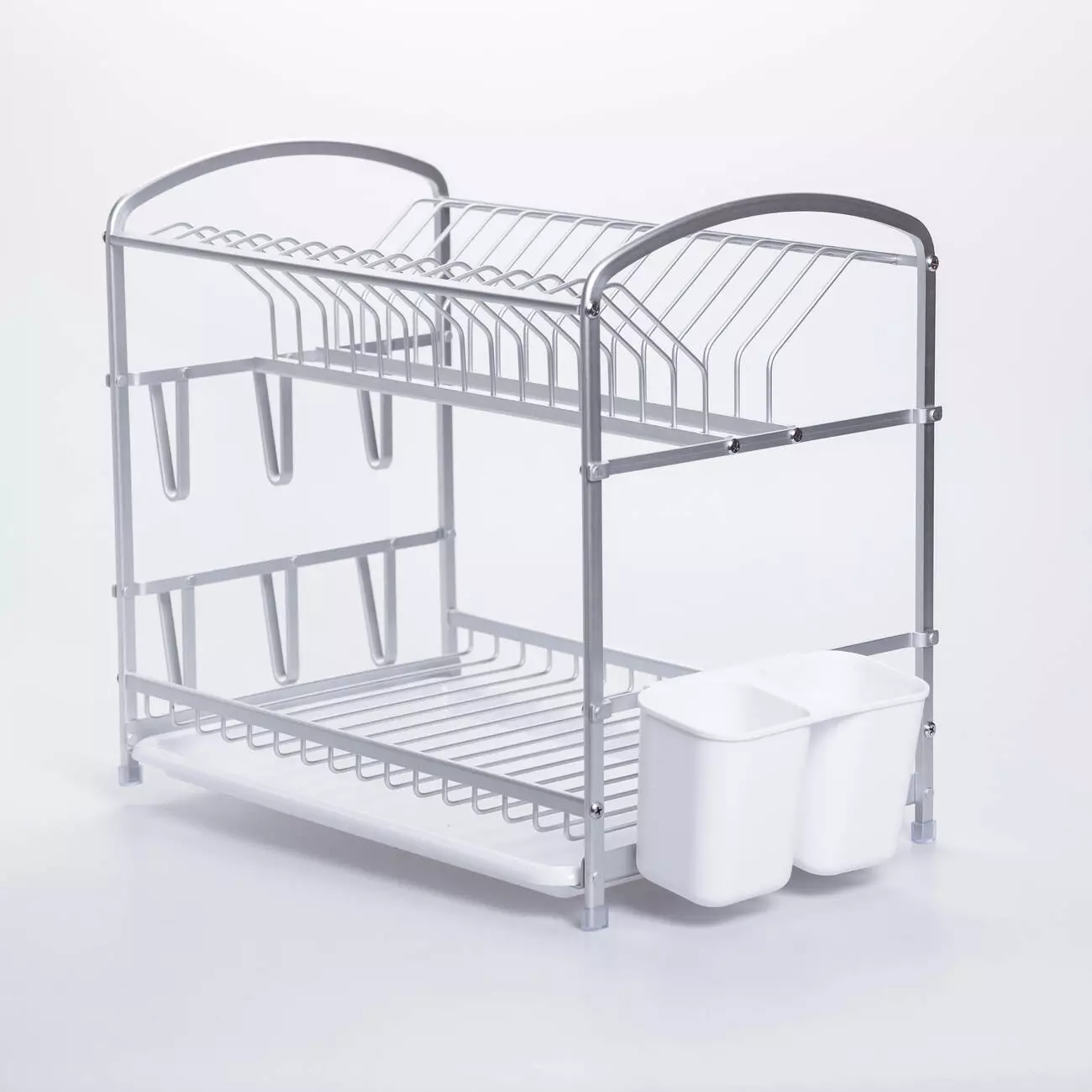 Стильна та функціональна дворівнева сушарка стане незамінним аксесуаром на будь-якій кухні. Вона поєднує в собі міцність металу та легкість догляду за пластиком, дозволяючи компактно розмістити велику кількість посуду. Ця сушарка - ідеальне поєднання довговічності, компактності та сучасного дизайну, яке допоможе підтримувати порядок на кухні.