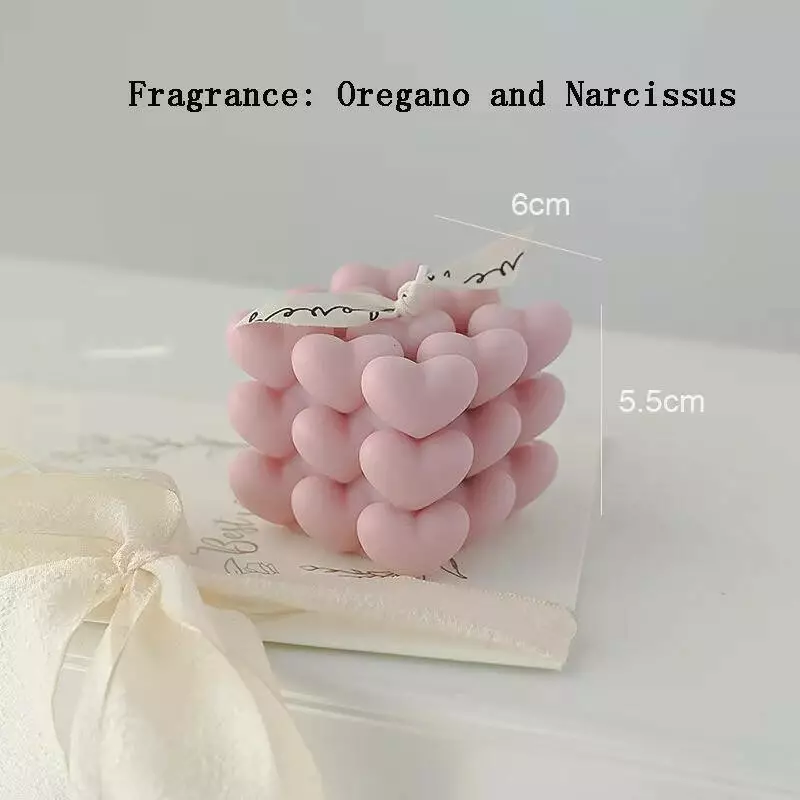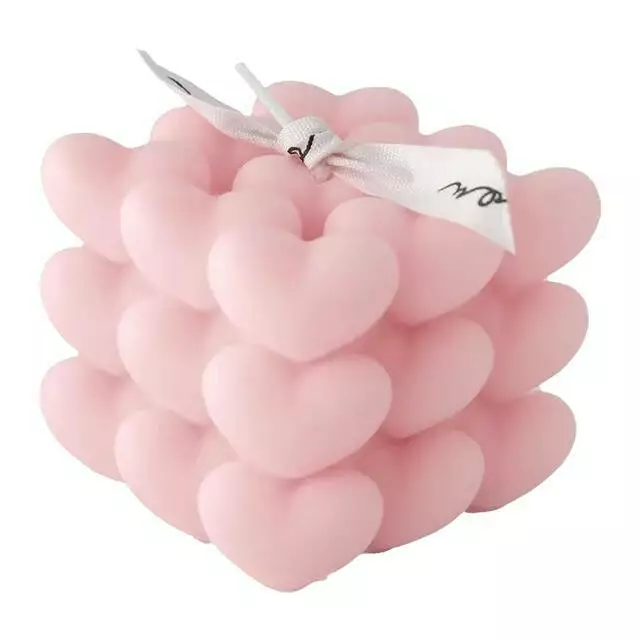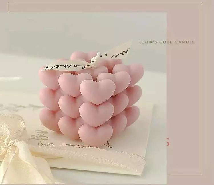 Свеча ручной работы в виде кубика сердец — это стильное дополнение