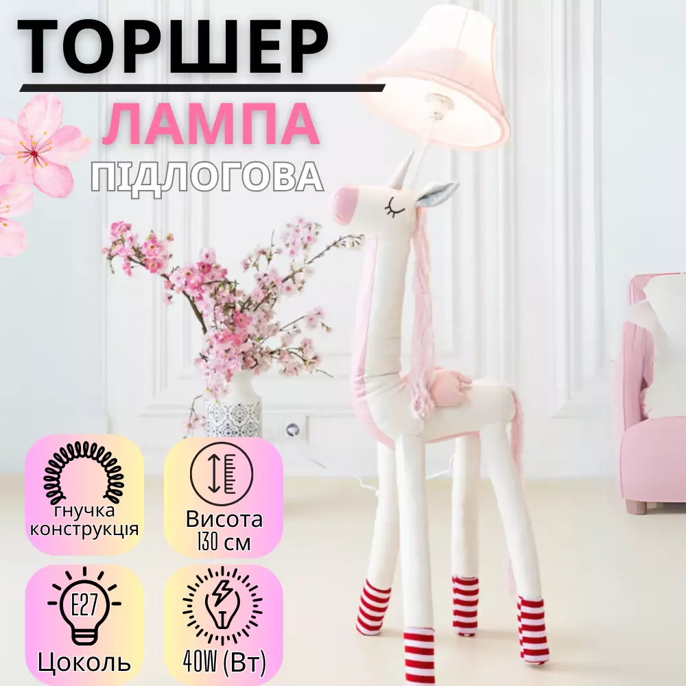 Напольная лампа в детскую комнату. Светильник "Единорог с бахромой"