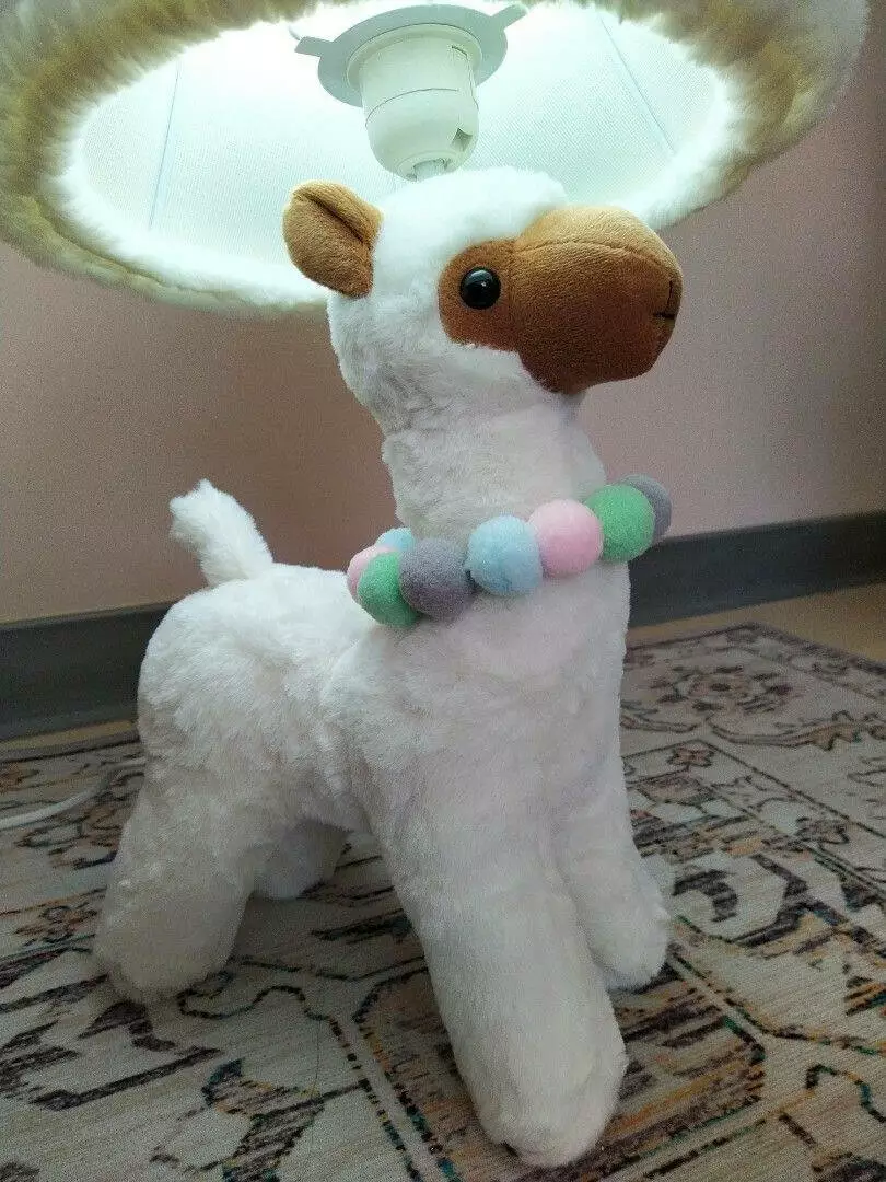 Очаровательная настольная лампа в виде белой плюшевой альпаки