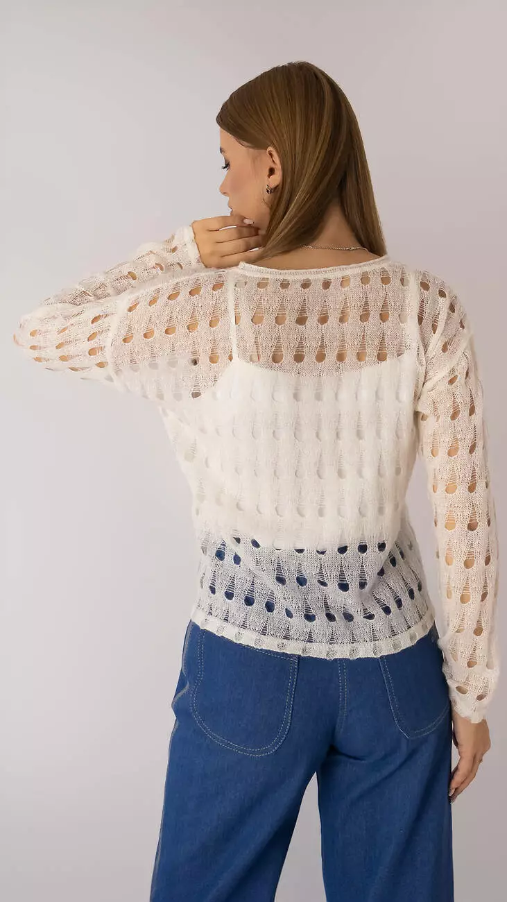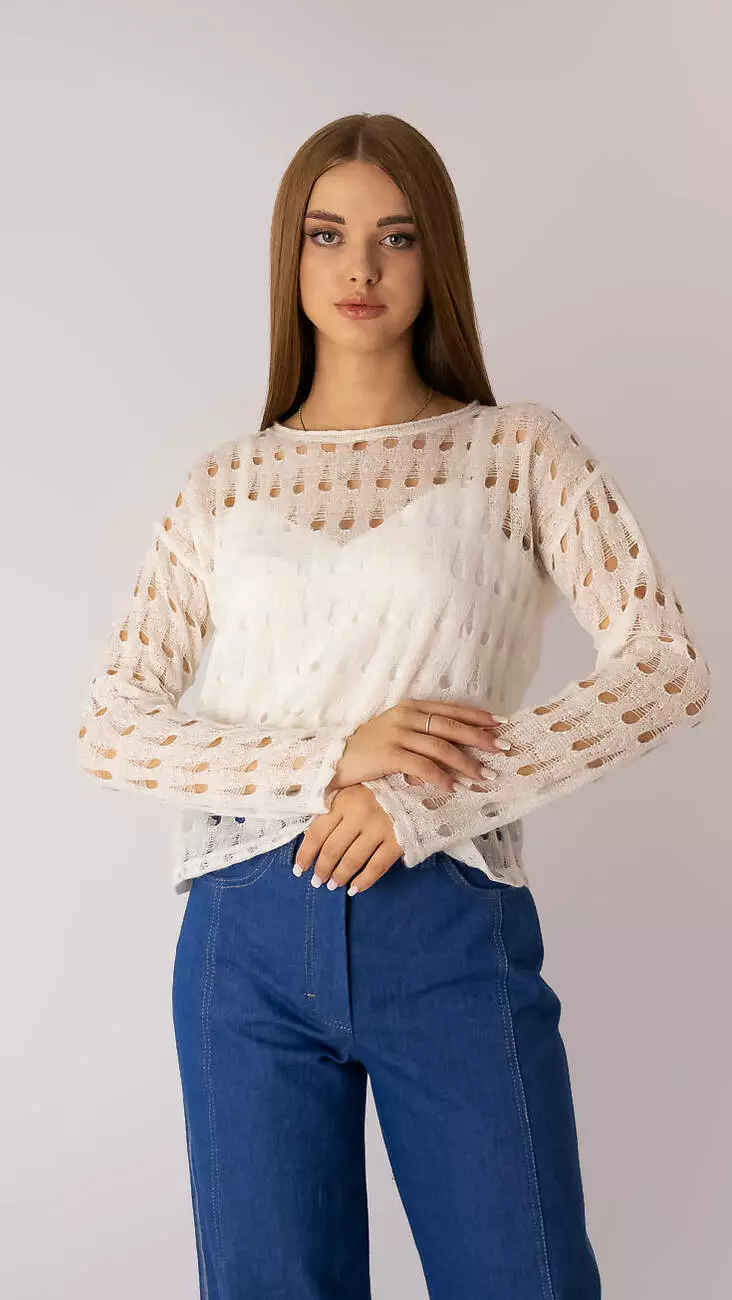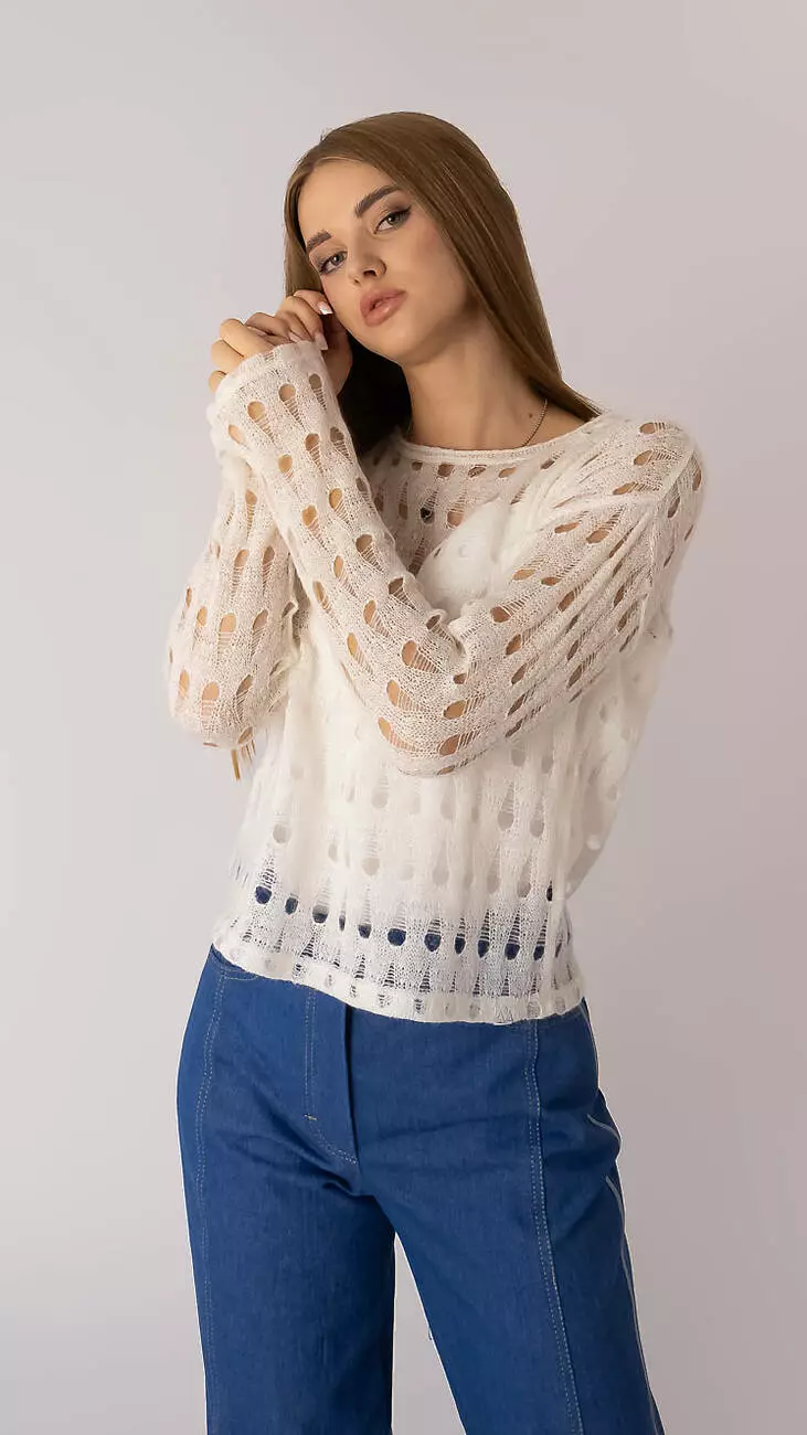 Ніжний светр Пір'їнка зшитий з італійської вовни, іде в комплекті з шовковим топом.