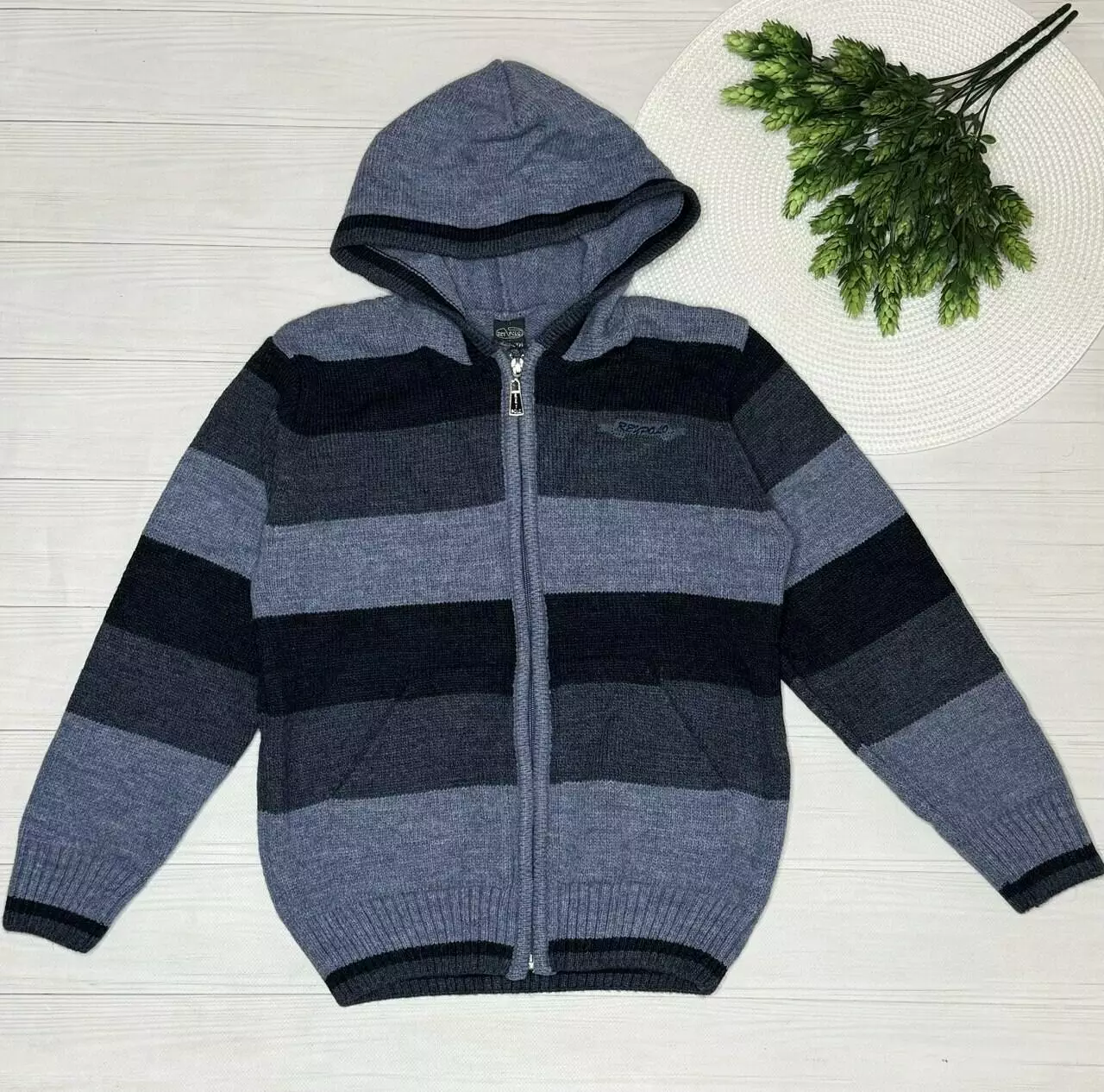 Светр -кофта хлоп. Синій 40%шерсть/30%акрил/20%поліамід/10%еліт 001 REY POLO