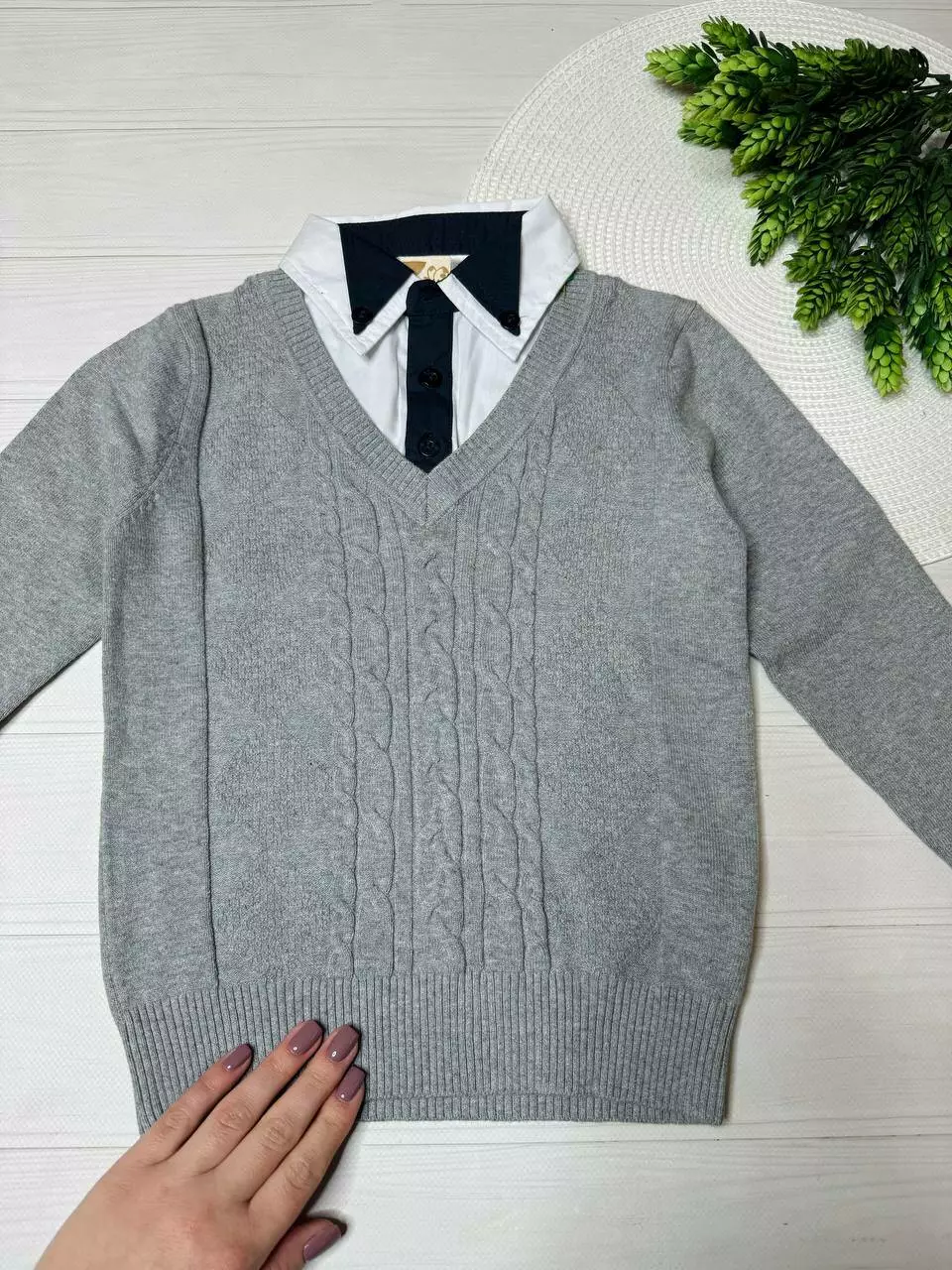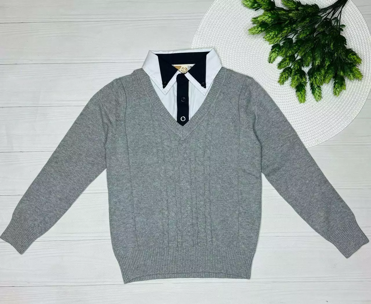 Светр з імітацією сорочки хлоп. Сірий 100% котон 3-62 MANY&MANY