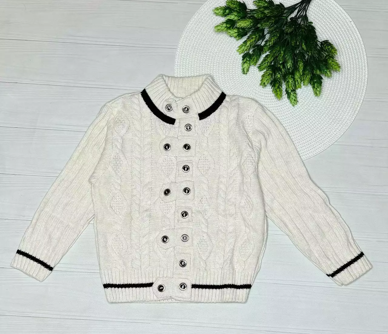 Светр застібка на гудзичках хлоп. Молочний 100% акрил 5072 ADA YILDIZ