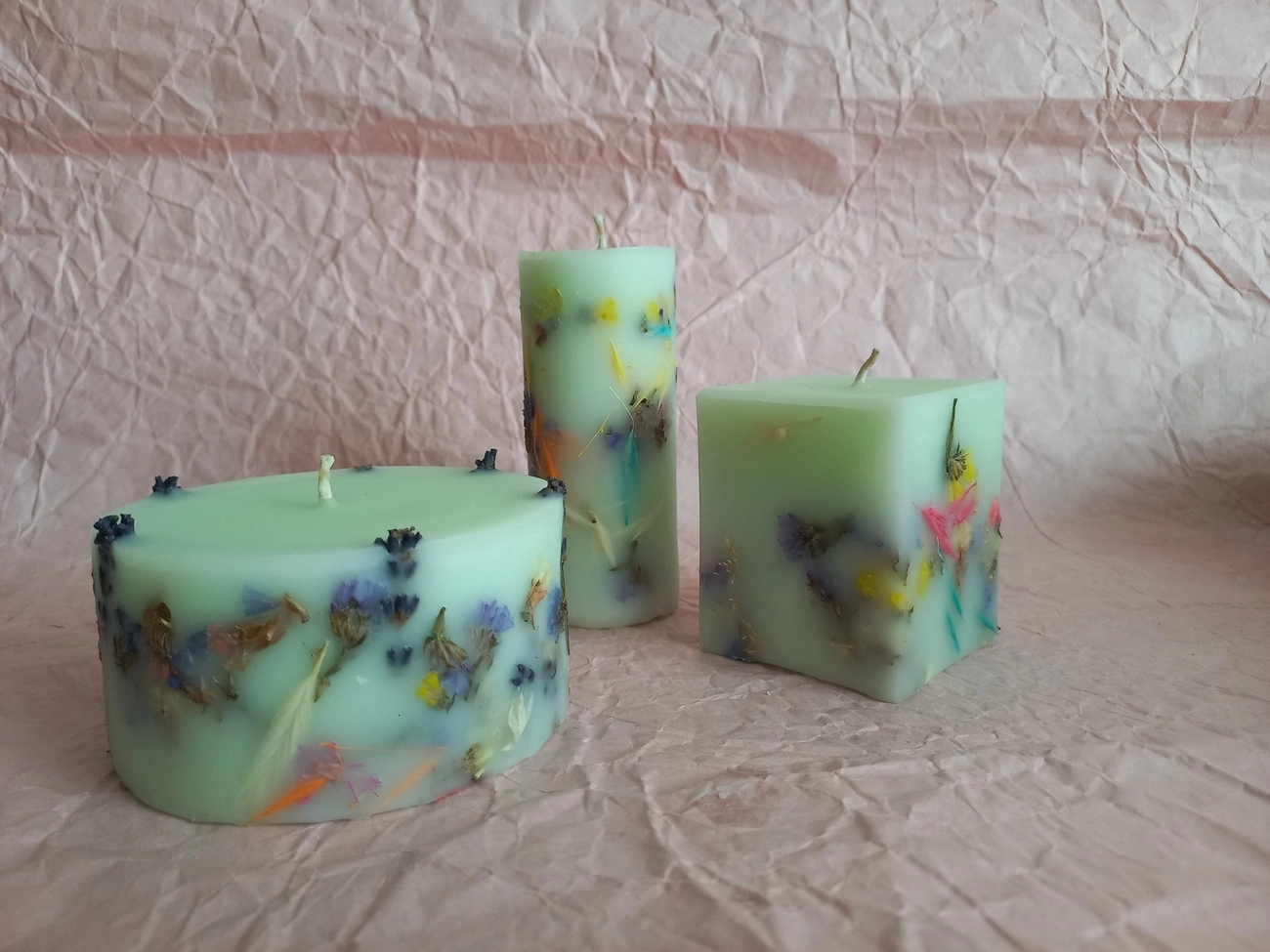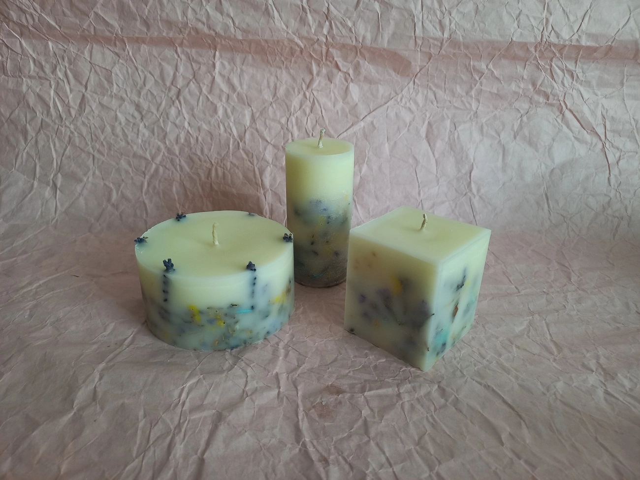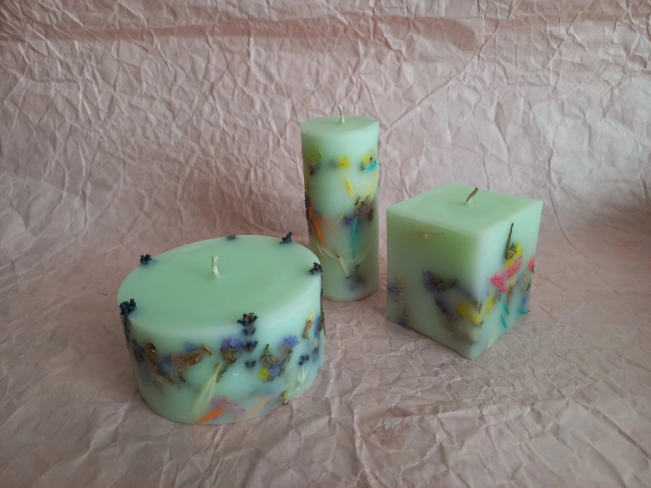 Набір із 3-х свічок, прикрашених натуральними сухоцвітами. Колір і аромат може бути різний.