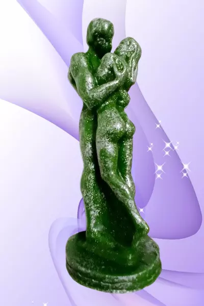 Зворушлива та символічна свічка ручної роботи з натурального воску у формі закоханої пари. Зелений колір надає їй особливої енергетики — він асоціюється з гармонією, довірою, серцевою чакрою та відродженням почуттів.