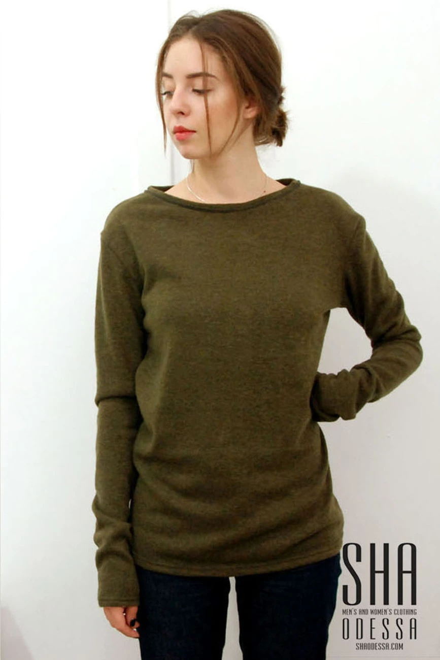 Свитер-лодочка хаки, женский 14-013-3