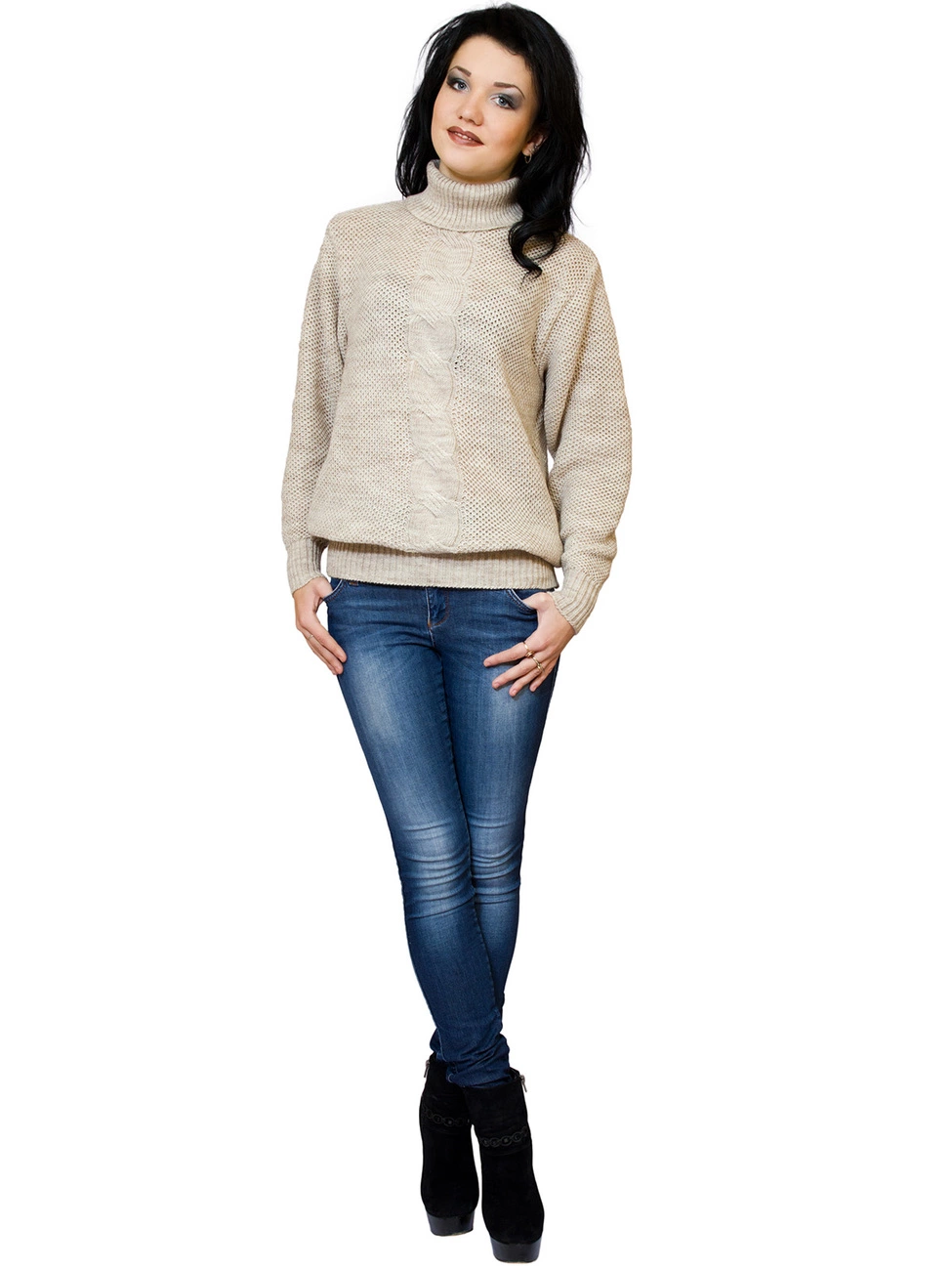 Теплый свитер свободного силуэта, украшенный рельефной