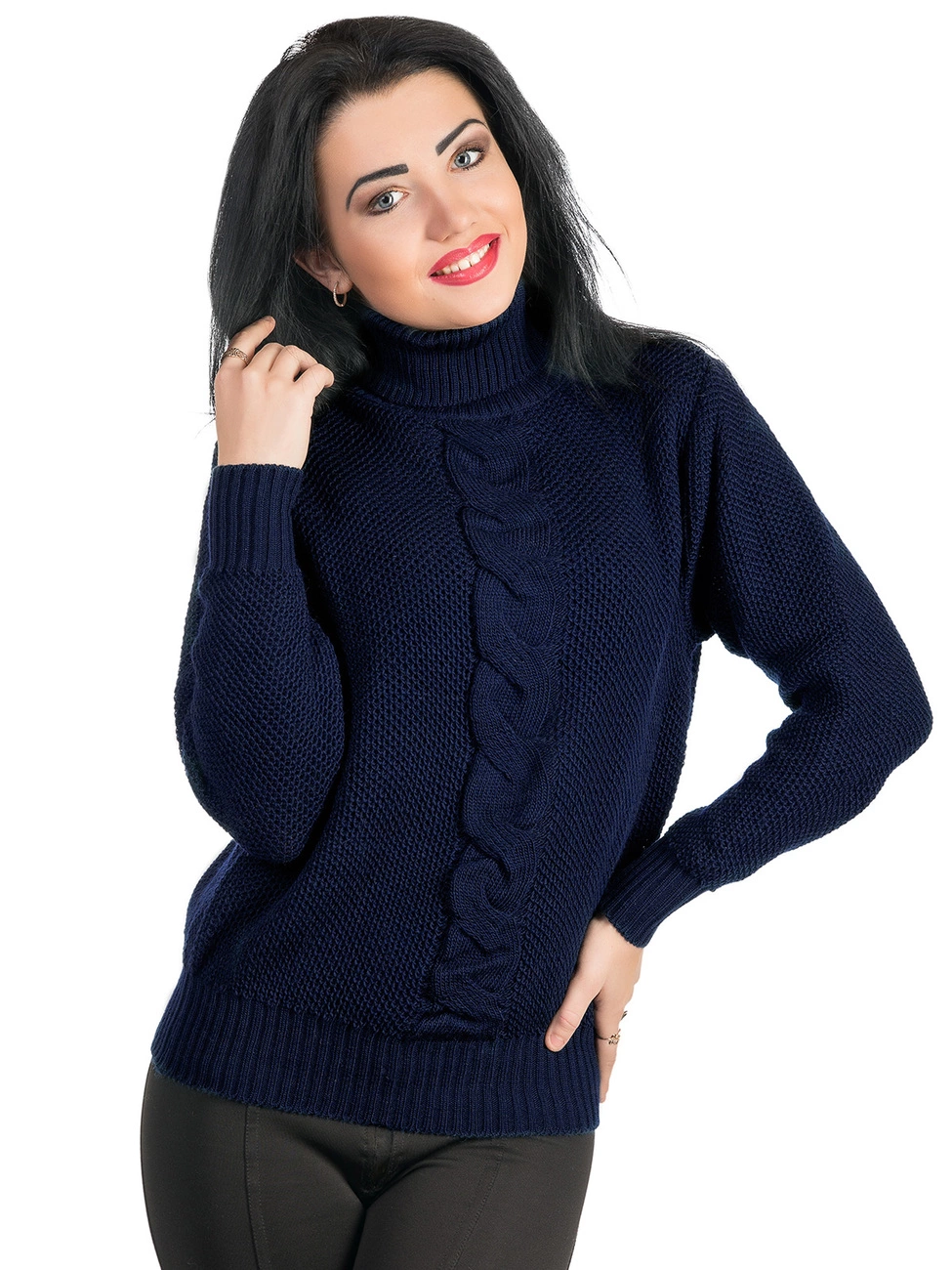 объемной вязкой. Изделие с воротником-стойкой и длинным