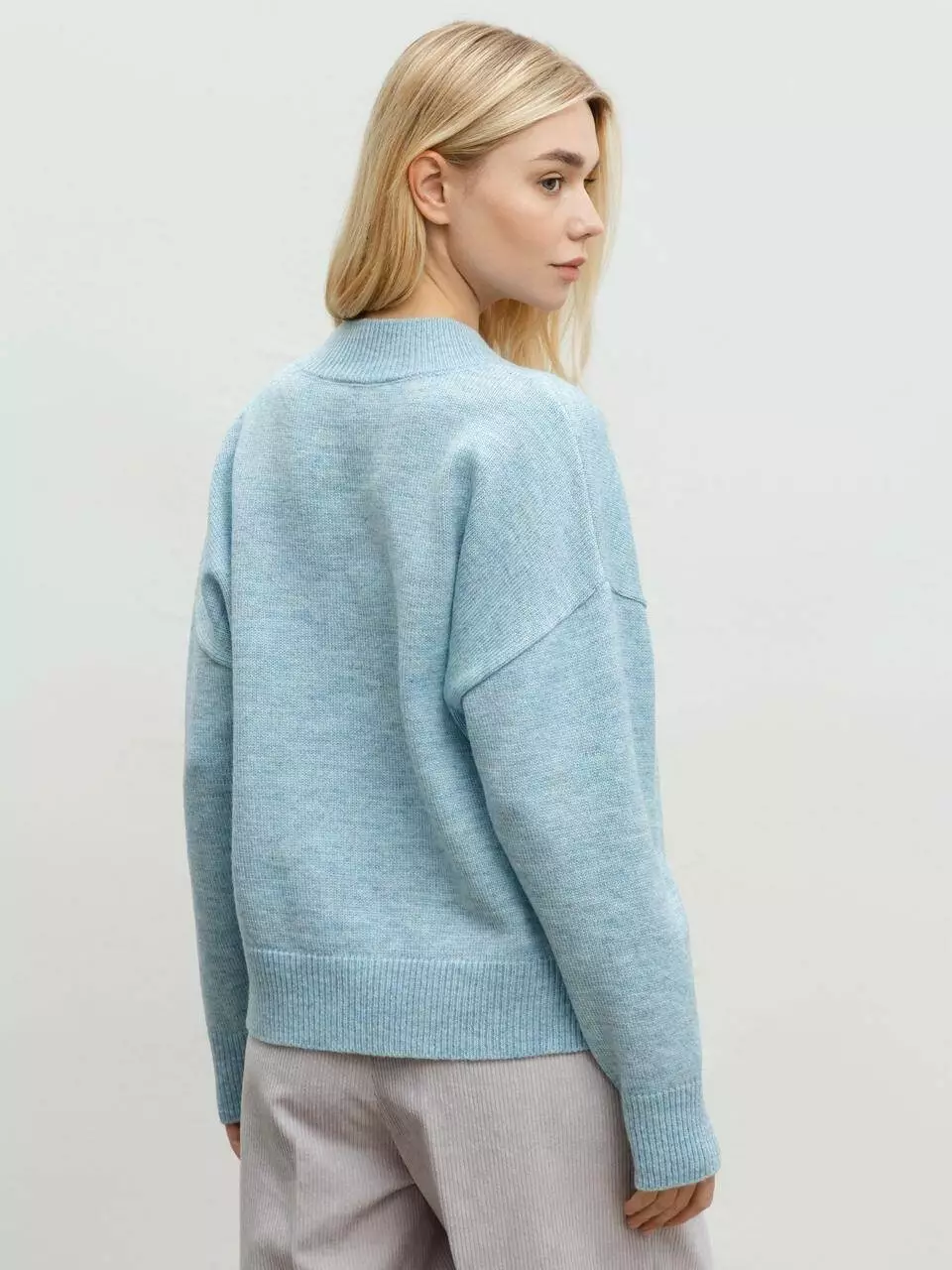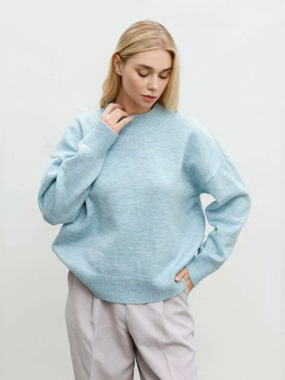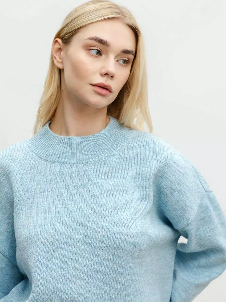Цей теплий светр ніжно-блакитного кольору стане справжньою знахідкою для холодних днів. Виконаний у помірному оверсайз стилі, він забезпечує комфорт і свободу рухів, не обмежуючи вас у щоденних справах.