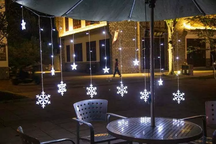 світловій завісі з фігурними елементами у вигляді сніжинок і зірок.