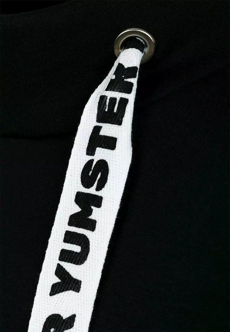 кишені. Біла тасьма з принтом "Yumster". Манжети з резинками на