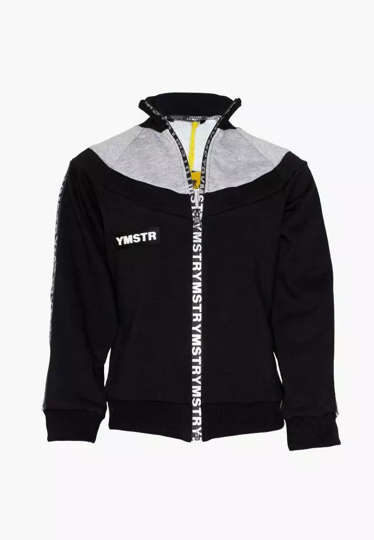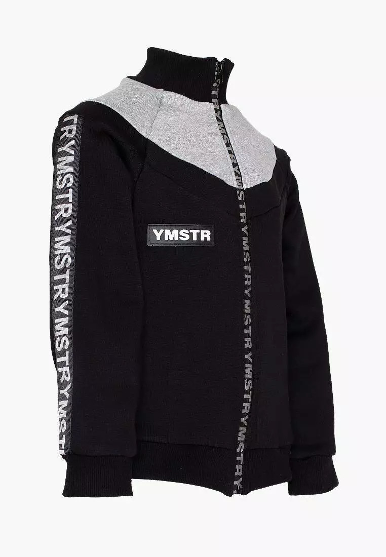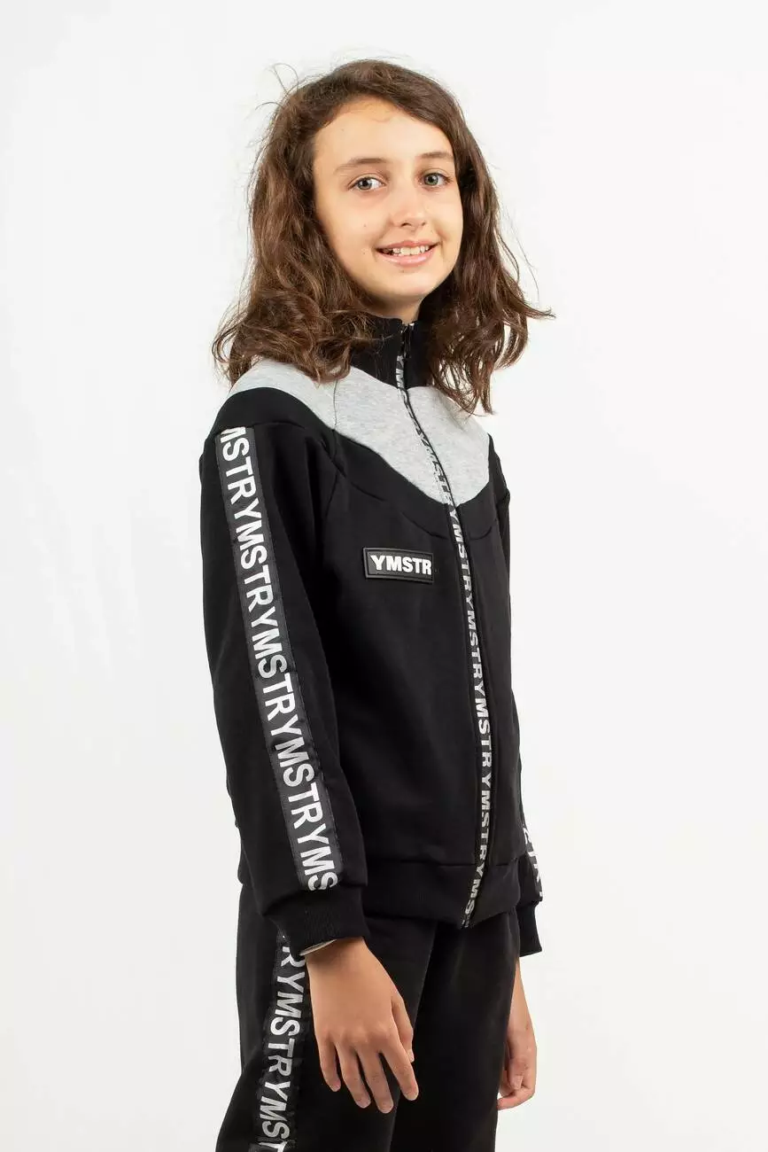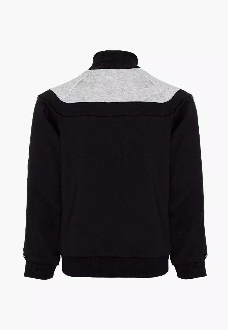 Деталі: світшот чорно кольору з сірою вставкою. Комір-стійка, манжети на рукавах і по низу світшота виконані з міцної рибани. Рукава світшота декоровані брендованої стрічкою. Матеріал - тринитка.Склад: 90% бавовна, 10% еластан. *Відтінок кольору на фотографії може відрізнятися від реального]]>