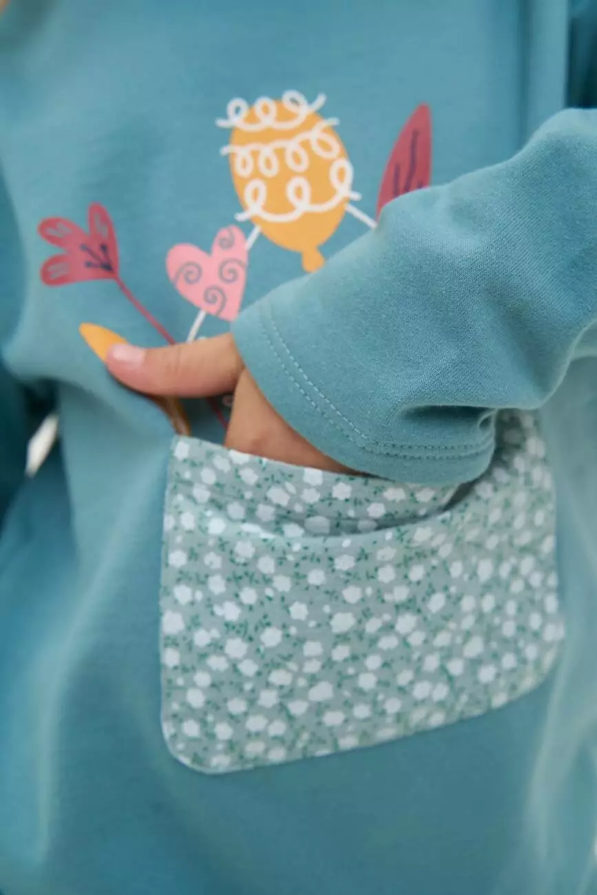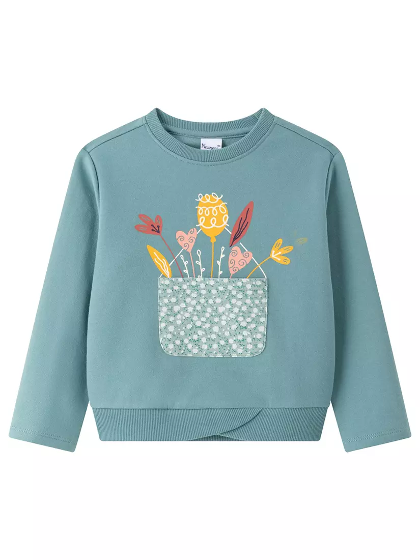 Зустрічайте нову колекцію - колаборація брендів YUMSTER і NEWNESS! Теплий світшот для дівчинки з милим квітковим принтом. Деталі моделі: світшот світло-зеленого кольору. Кругла горловина. Довгий рукав. На грудях аплікація з квіткового принта та накладної кишені. Горловина та низ світшота оброблені еластичною резинкою. Світшот теплий, із начосом. Розмірний ряд: на зріст від 98 см до 134 см
