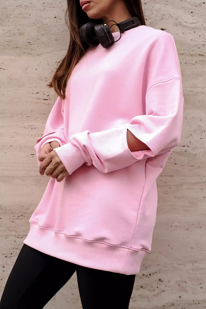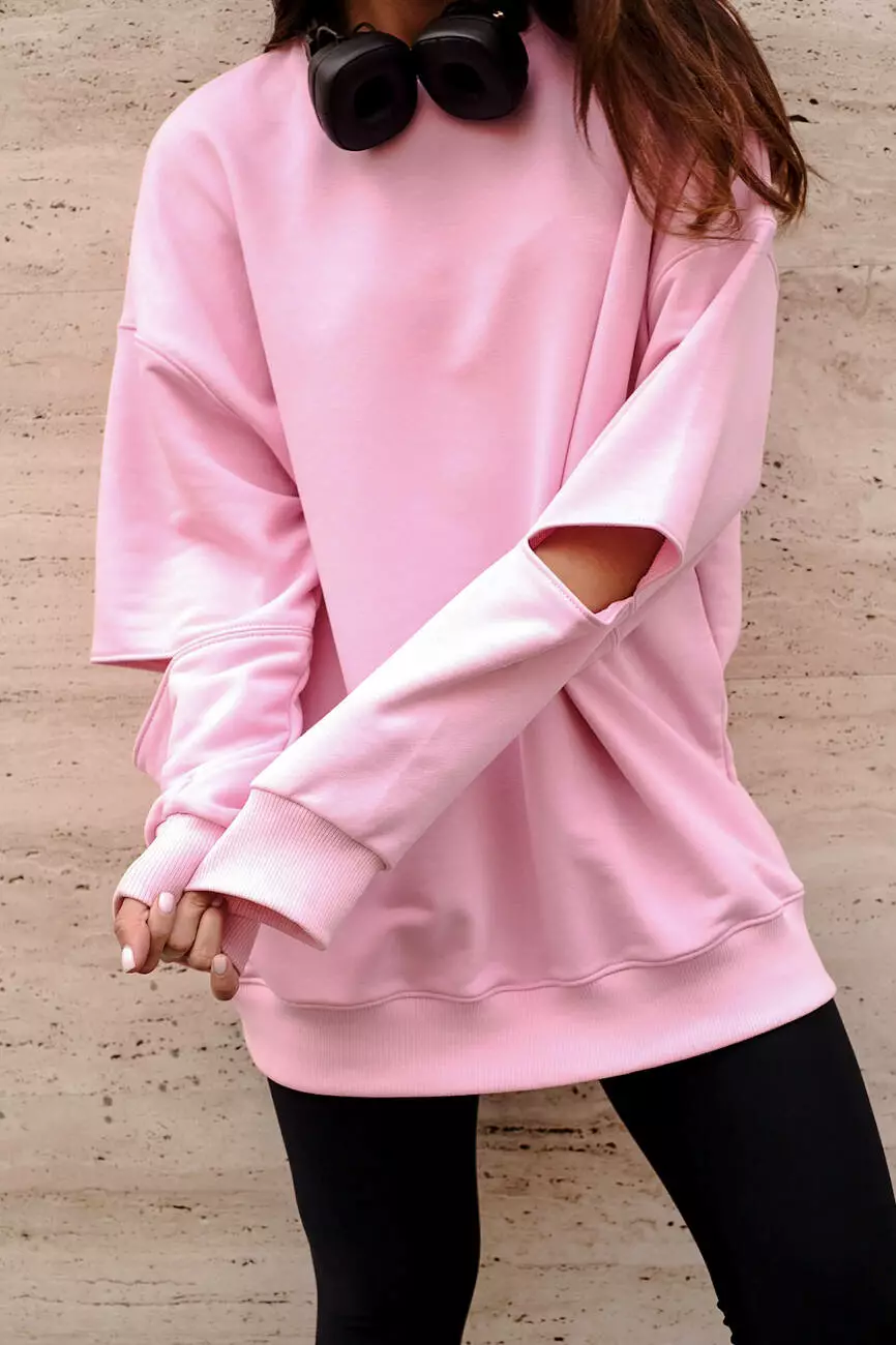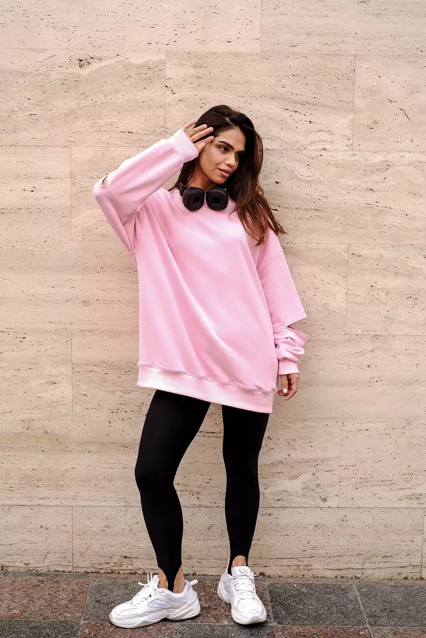 Світшот оверсайз з розрізами на рукавах рожевий. Доступний до замовлення в 4х кольорах: графіт, синій, бежевий, рожевий