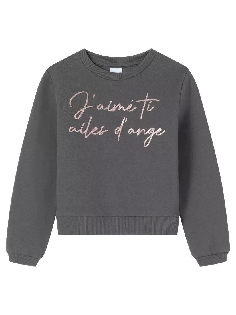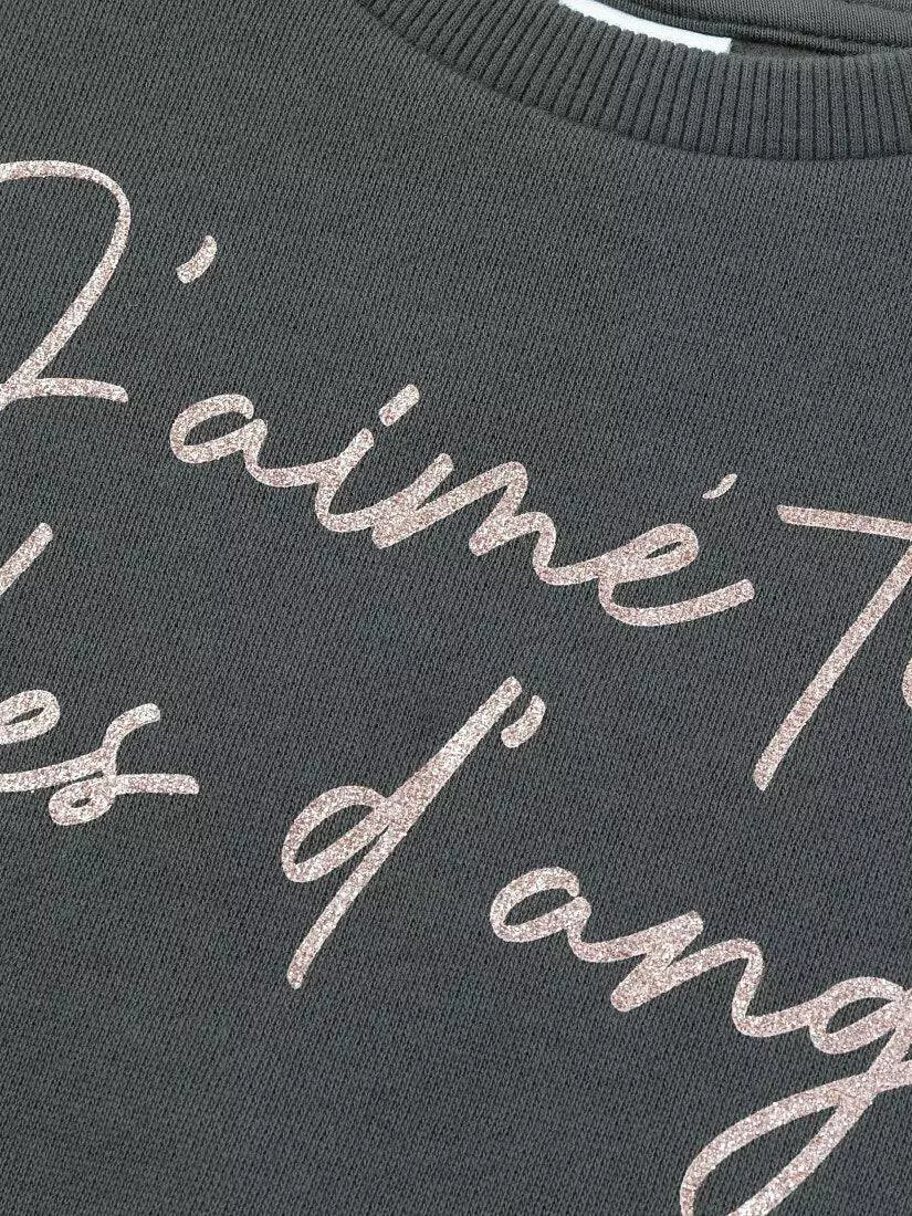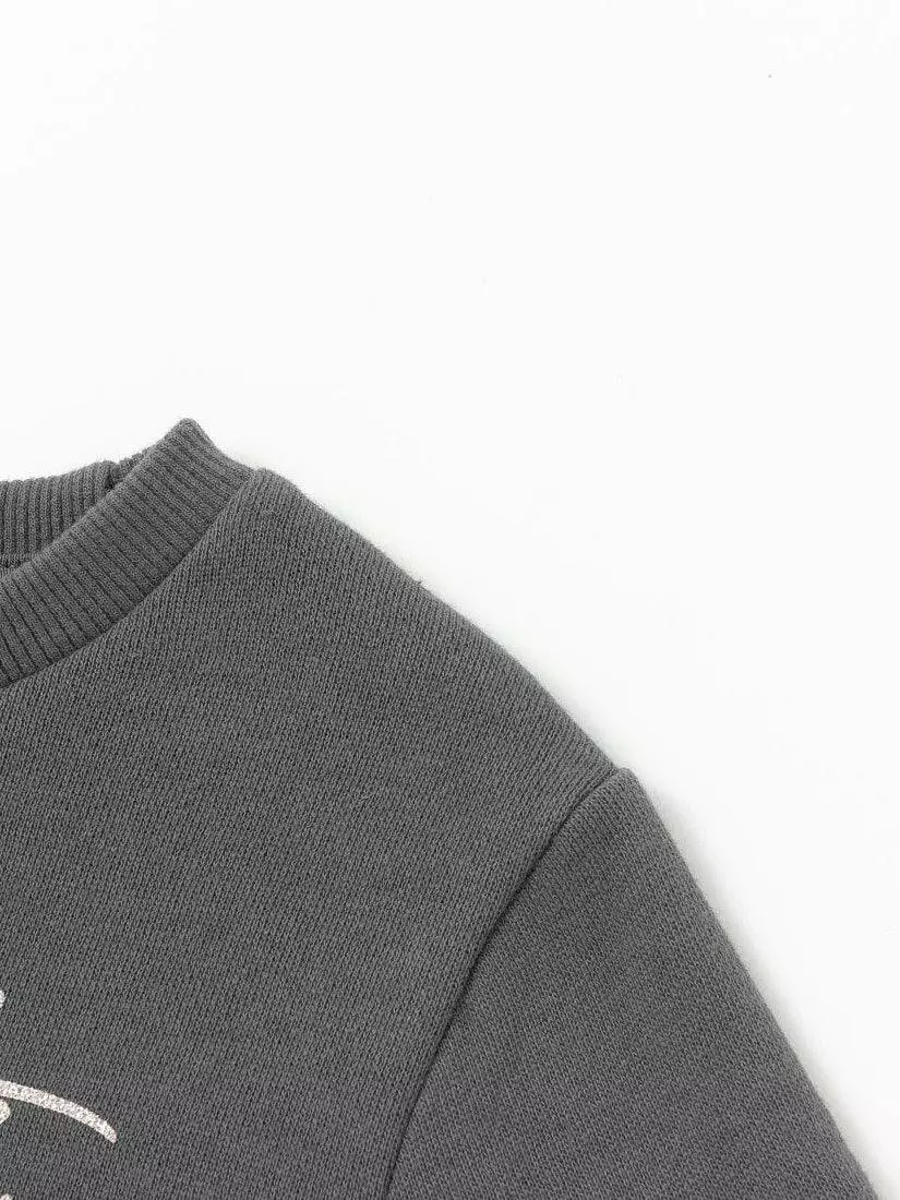 Зустрічайте нову колекцію - колаборація брендів YUMSTER і NEWNESS! Теплий світшот для дівчинки з лаконічним написом – принтом на грудях. Деталі моделі: світшот сірого кольору. Кругла горловина. Довгий рукав. На грудях принт у вигляді напису. Горловина, манжети на рукавах та низ світшота обрамлені еластичною резинкою. Світшот із начосом. Розмірний ряд: на зріст від 98 см до 140 см