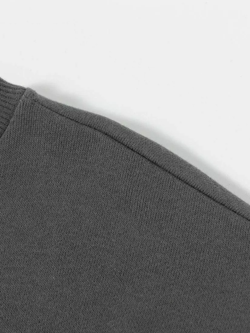 темно-сірого кольору. Кругла горловина, довгий рукав. Занижена