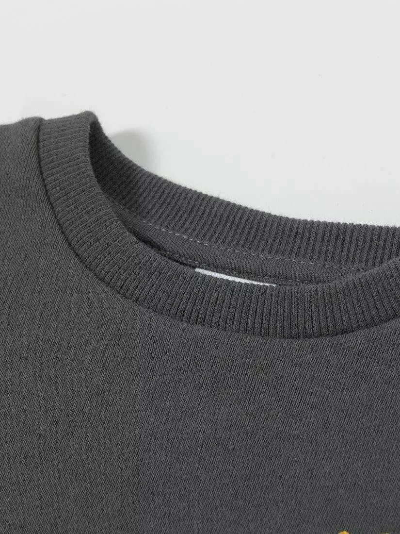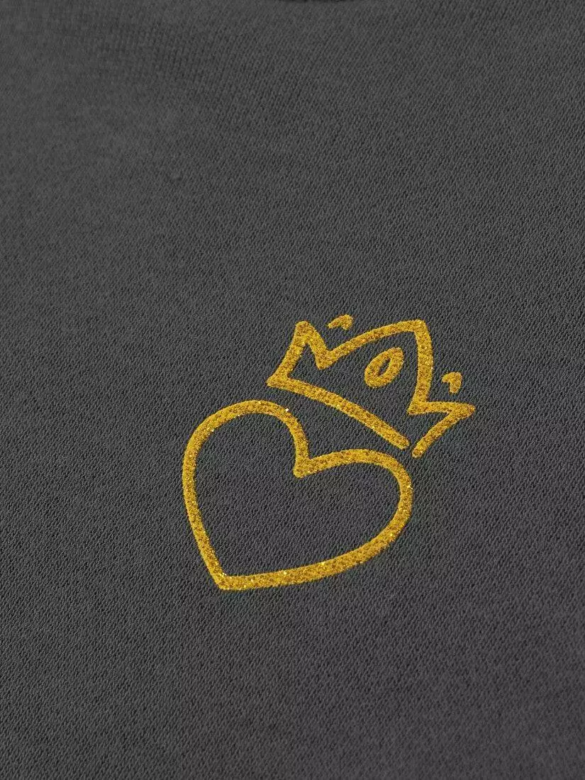 Зустрічайте нову колекцію - колаборація брендів YUMSTER і NEWNESS! Тепло, затишок, функціональність та модний дизайн - все це робить цей світшот ідеальним партнером для динамічної та модно обізнаної дівчинки. Деталі моделі: світшот темно-сірого кольору. Кругла горловина, довгий рукав. Занижена лінія плеча. Вільний крій. На грудях принт - серце та корона. На рукавах вставки із фатина чорного кольору із золотим напиленням. Горловина, манжети рукавів та низ світшота обрамлені м'якою та еластичною резинкою. Розмірний ряд: на зріст від 98 см до 140 см