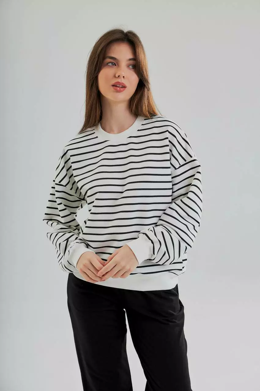 Жіночий світшот з двонитки в смужку — комфорт з ноткою класики