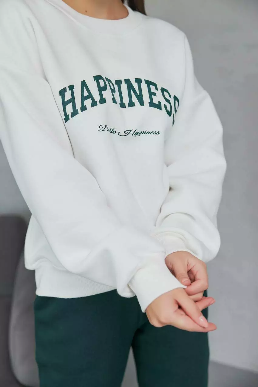 образі Цей теплий світшот з написом "Happiness" створений для тих,