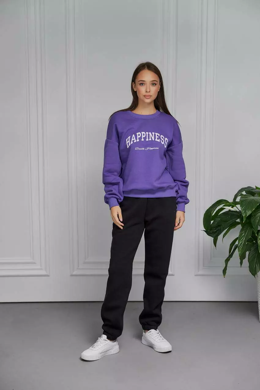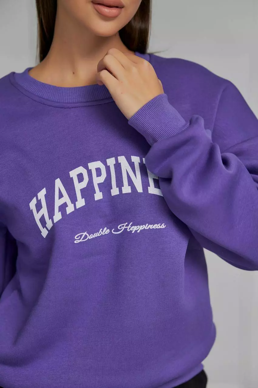 Жіночий світшот з начосом і принтом "Happiness" Цей жіночий світшот