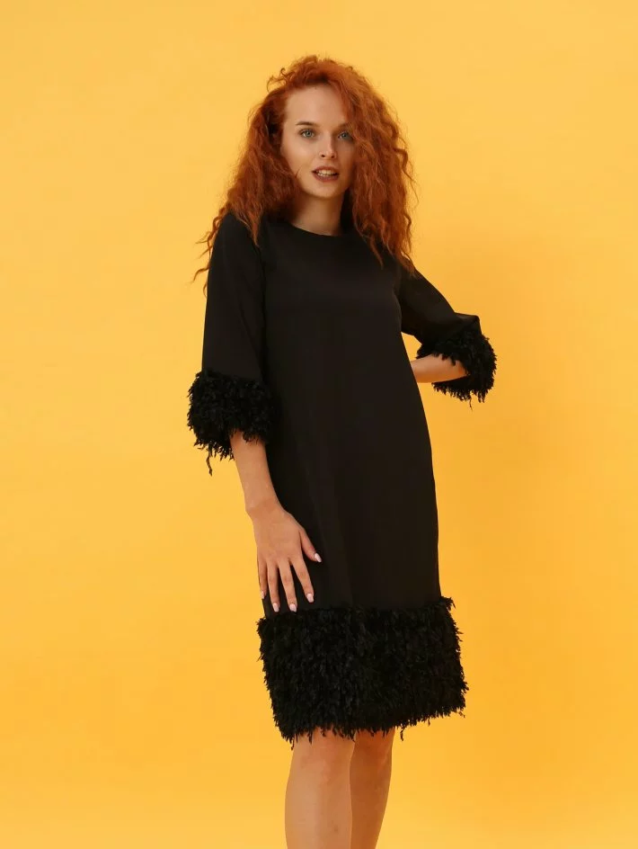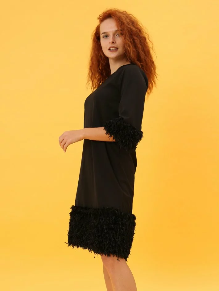Сукня пряма, з рукавом 3/4 оформлена штучним хутром. Застібається