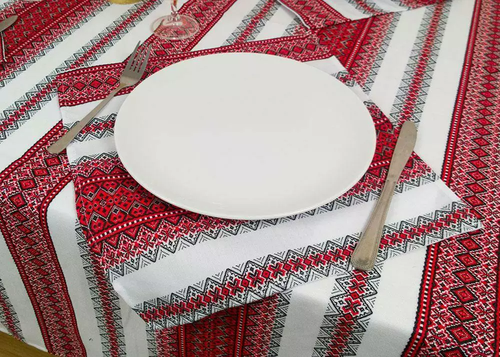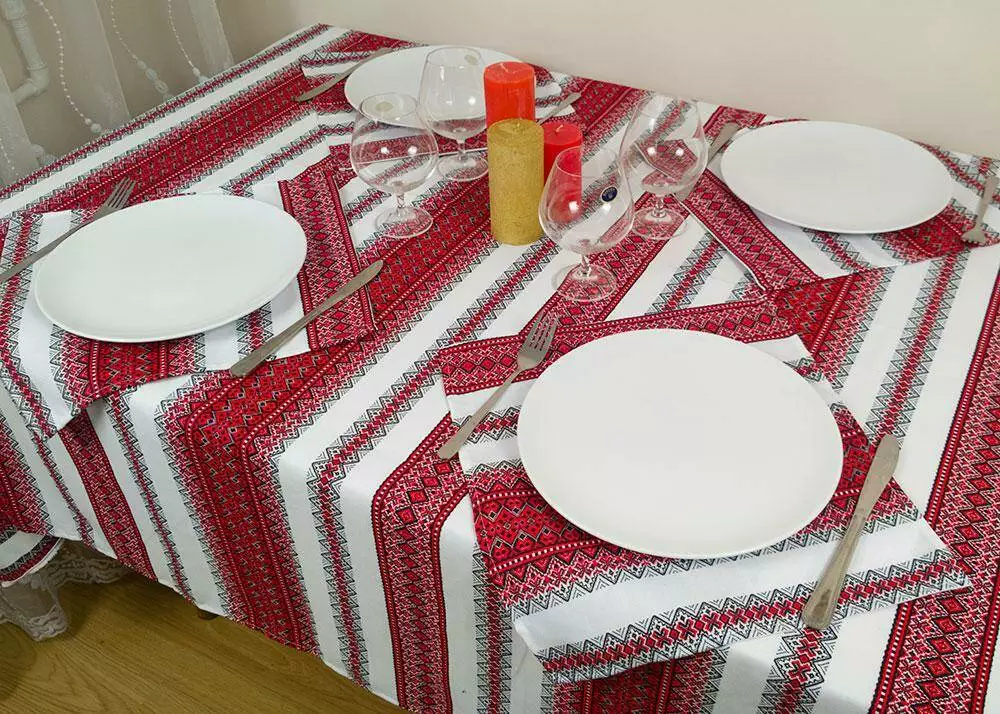 Святкова новорічна скатертина з вишивкою Червоний, 230х145 см, + 6 серветок