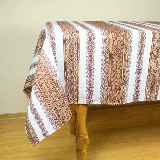Святкова новорічна скатертина з вишивкою Коричневий, 230х145 см, Без серветок