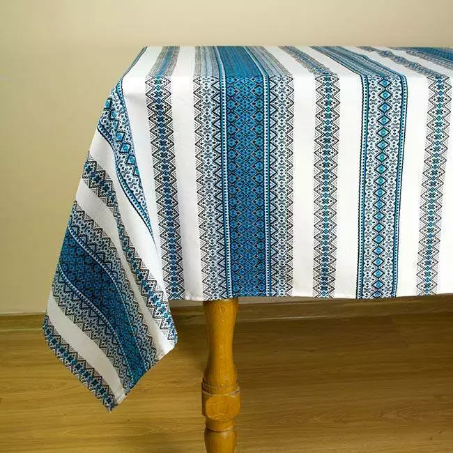 Святкова новорічна скатертина з вишивкою Синій, 115х145 см, + 6 серветок