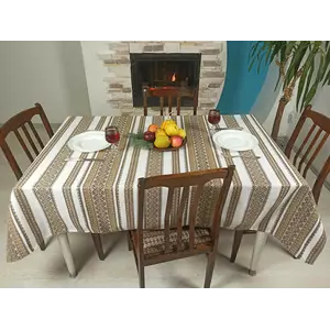 Эта яркая скатерть с уникальным орнаментом хорошо подойдет для домашнего использования, как элемент праздничного декора или на подарок.