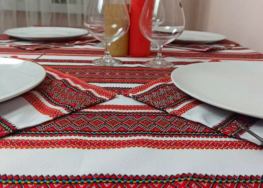 Святкова ткана скатертина з орнаментом + 6 серветок, 115х145 см, Червоний