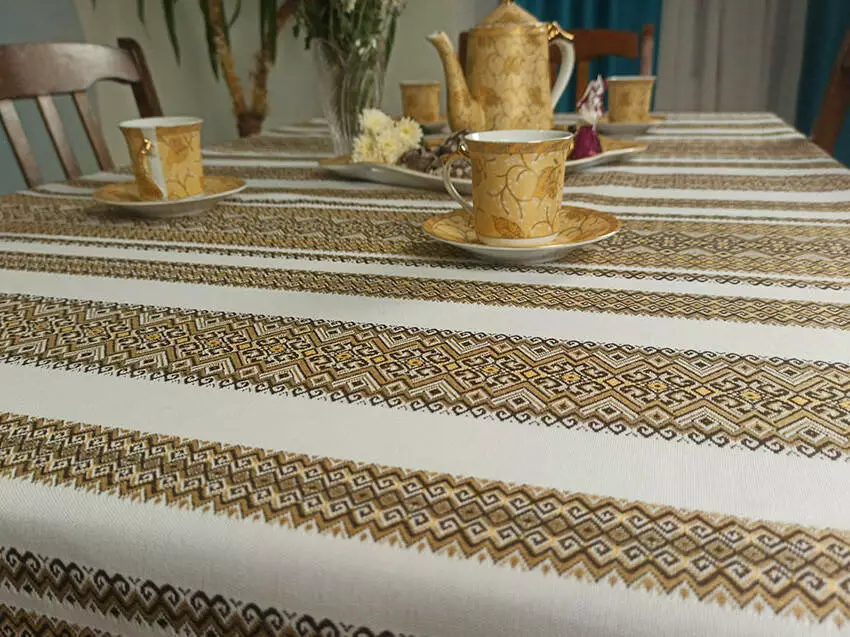 Святкова ткана скатертина з орнаментом + 6 серветок, 195х145 см