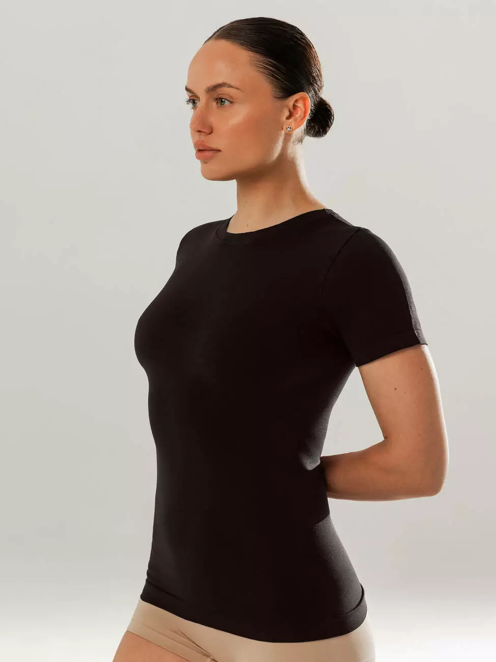 Універсальна безшовна футболка Giulia T-shirt з м'якої мікрофібри з круглою горловиною в широкій палітрі кольорів. Комфортна, дихаюча, ідеально облягає фігуру, легко поєднується з різним одягом для створення стильних образів.