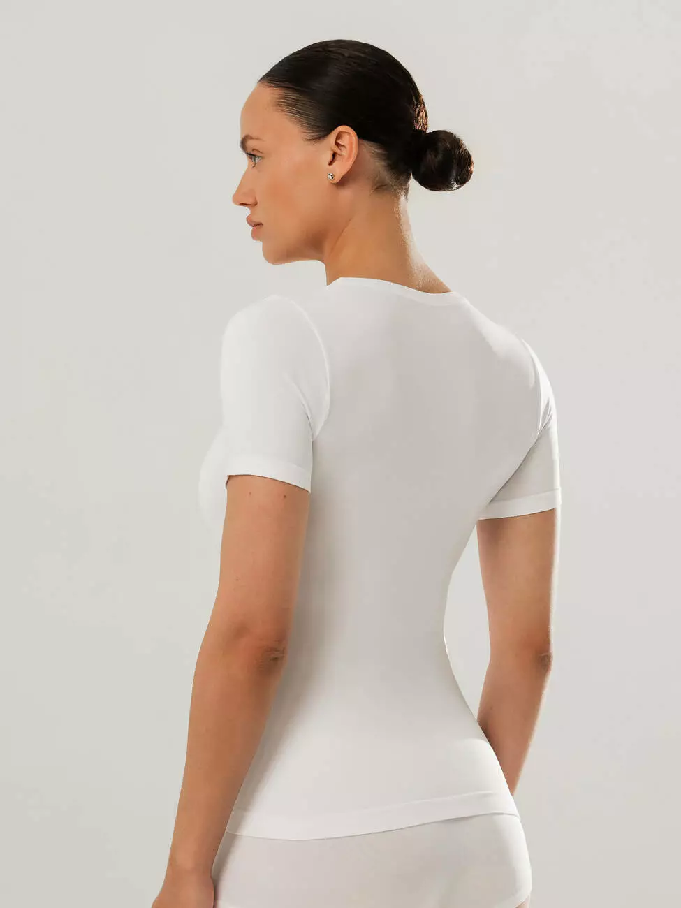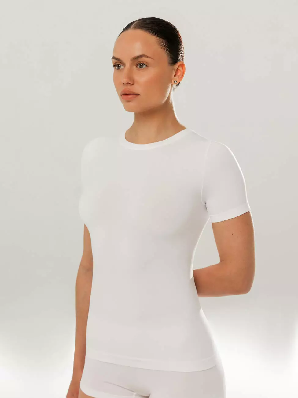 Універсальна безшовна футболка Giulia T-shirt з м'якої мікрофібри з круглою горловиною в широкій палітрі кольорів. Комфортна, дихаюча, ідеально облягає фігуру, легко поєднується з різним одягом для створення стильних образів.
