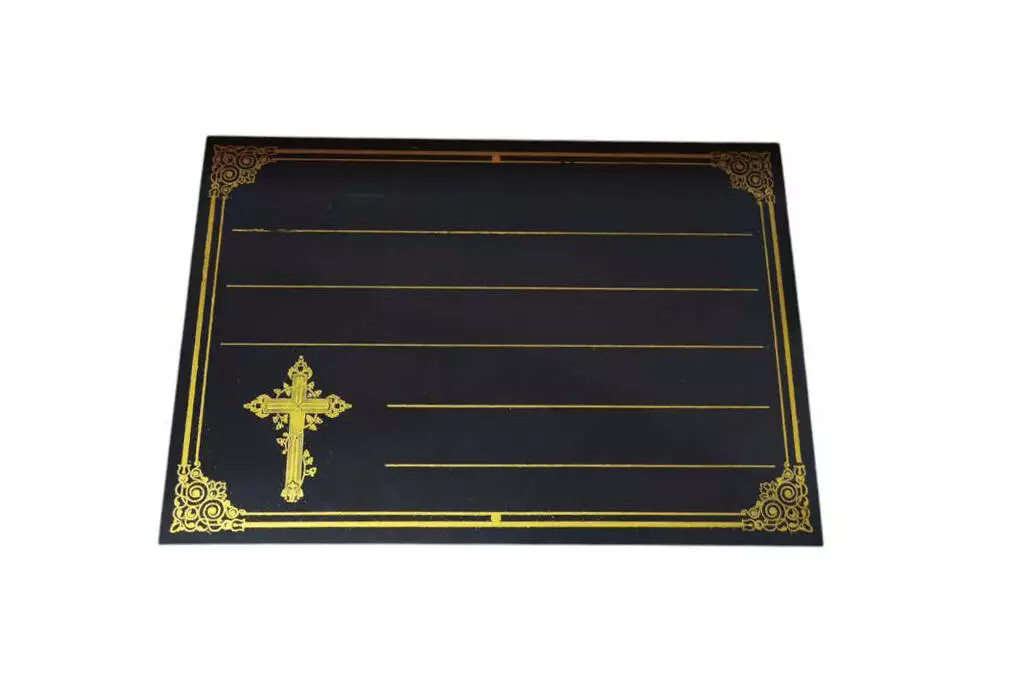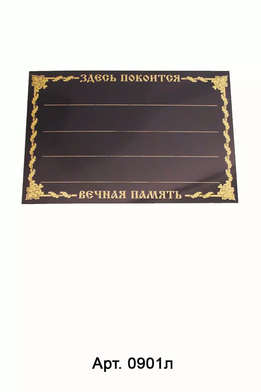 Табличка на хрест, розмір: 17*25 см. Виконана із чорного пластику,