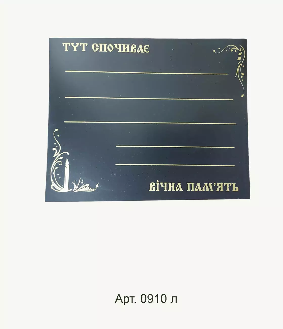 Табличка на хрест, розмір: 20*25 см. Виконана із чорного пластику,
