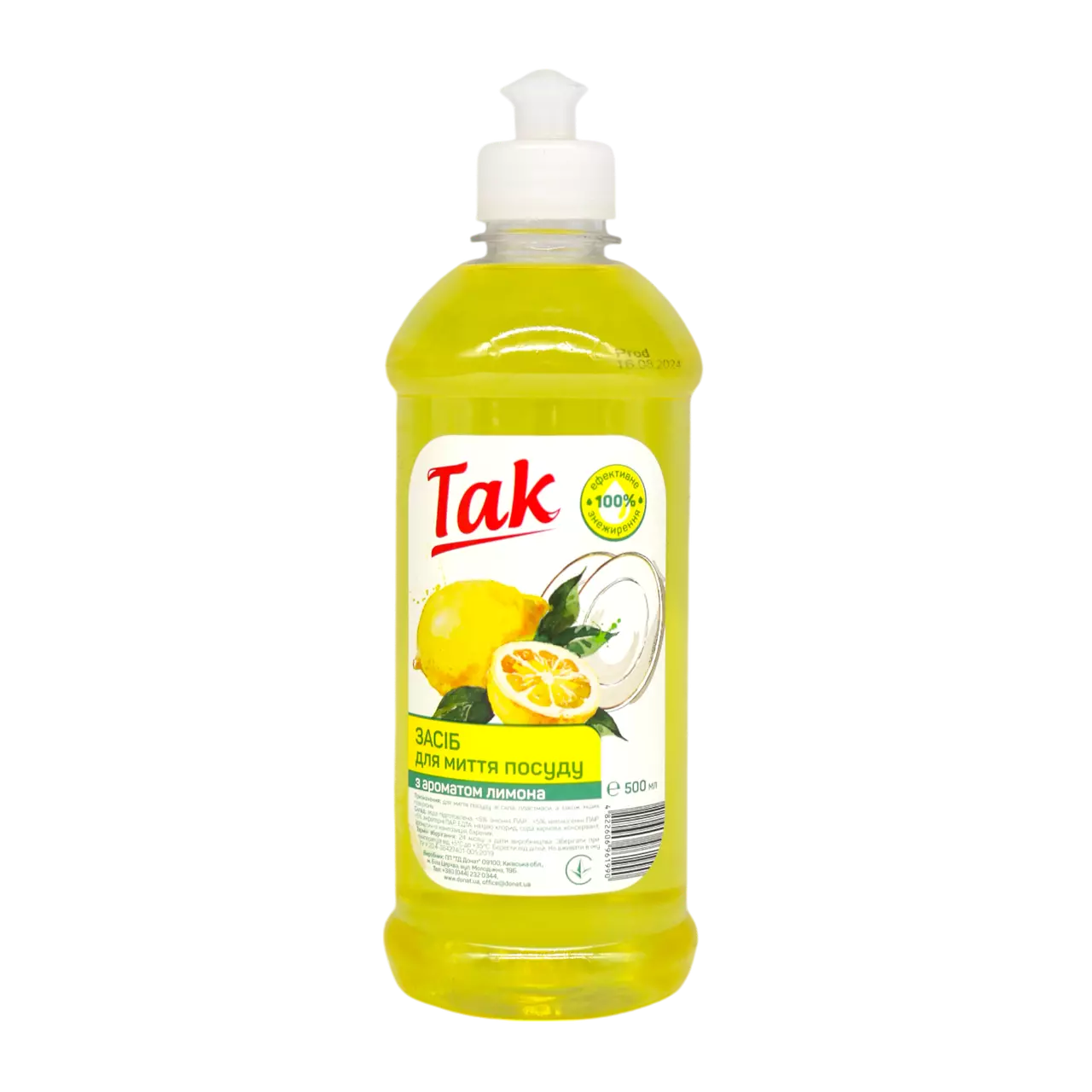TAK Засіб для миття посуду з ароматом лимона в упаковці об'ємом 500