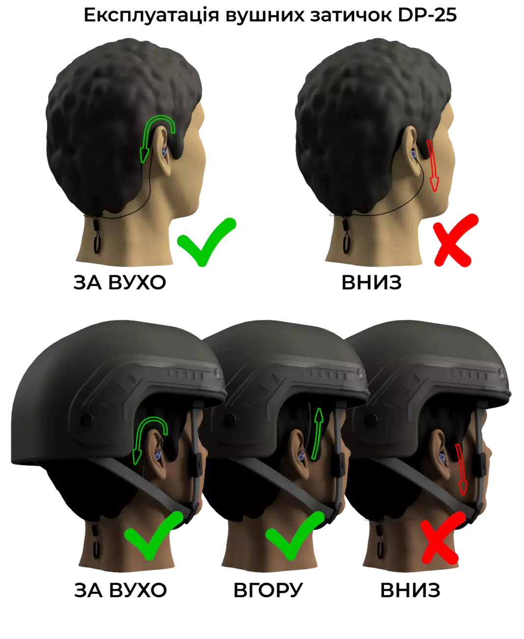 Таким образом, затычки с искусственной барабанной перепонкой очень удобно использовать во время военных действий (маленькие физические размеры DP-25 не мешают использовать шлем на голове), в шумных помещениях, во время стендовой стрельбы или в тирах.
