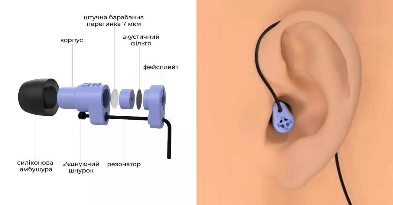 Defense Plug 25dB (DP-25) универсальные пассивные затычки с искусственной барабанной перепонкой, спроектированные украинской лабораторией Ambient Acoustics для защиты органов слуха.